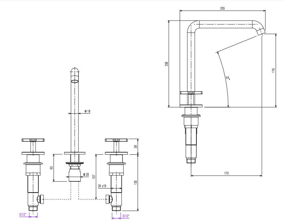 La Torre Elle Cross – Μπαταρία νιπτήρος θερμομικτική επικαθήμενη 3 οπών Inox