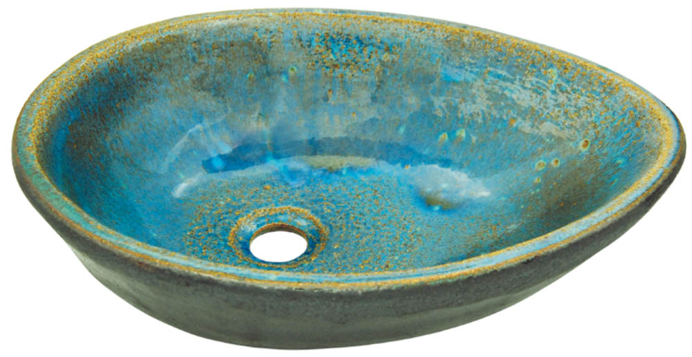 5037TA – Χειροποίητος νιπτήρας πορσελάνης επικαθήμενος οβάλ 50x37xΥ12 cm Grey Turquoise