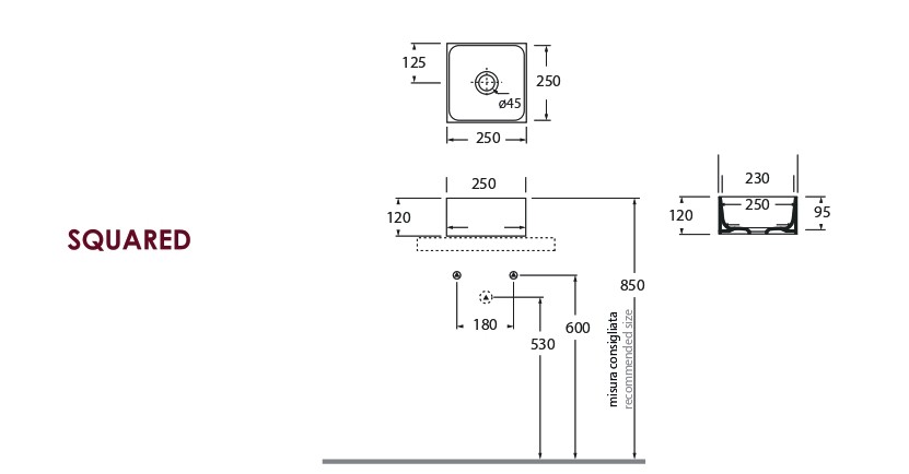 Azzurra Squared – Νιπτήρας κεραμικός επικαθήμενος 25×25 cm White