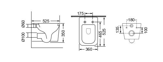 Λεκάνη κρεμαστή πορσελάνινη, Rimless χωρίς εσωτερικό χείλος για εύκολο καθαρισμό.