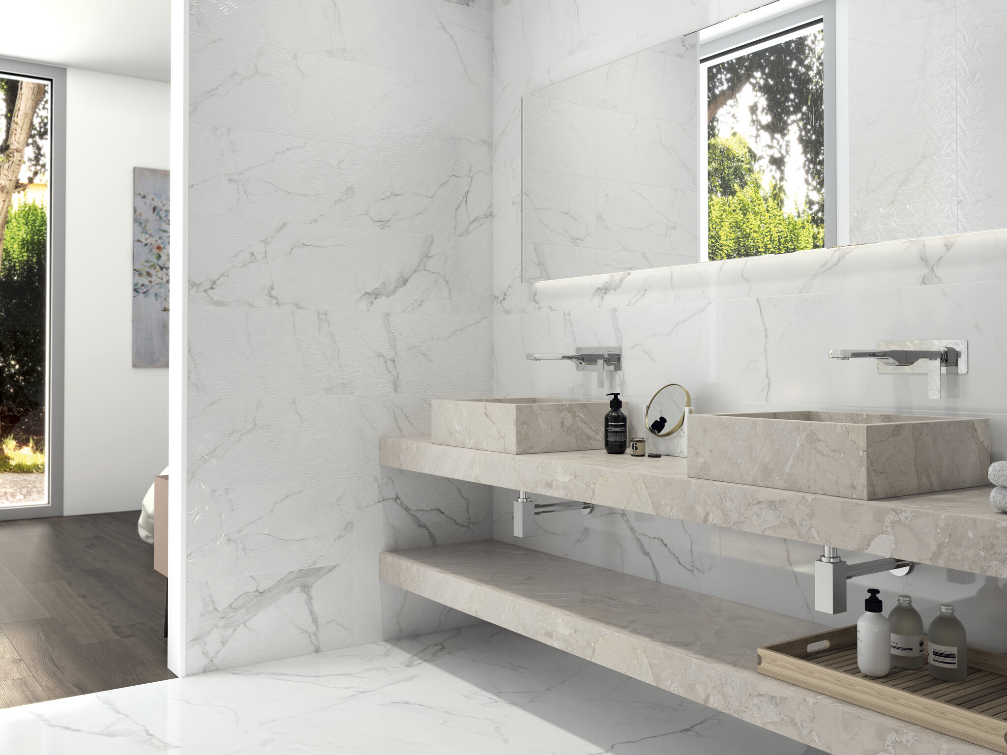 Η γοητεία της φυσικής πέτρας γίνεται άπειρη ομορφιά σε αυτά τα μαρμάρινα πλακάκια πορσελάνης για έργα όπου η κομψότητα και η φινέτσα είναι πρωταρχικής σημασίας.
