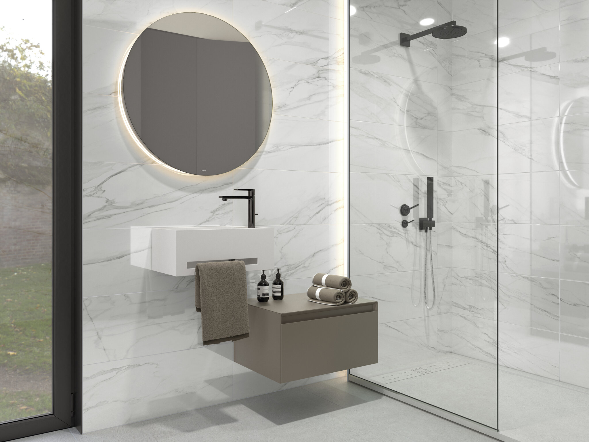 Αυτή η συλλογή πλακιδίων αναπαράγει τις λεπτομέρειες του μαρμάρου μέσα από γραφικές παραλλαγές στο χρώμα και το σχέδιο με τις φλέβες.