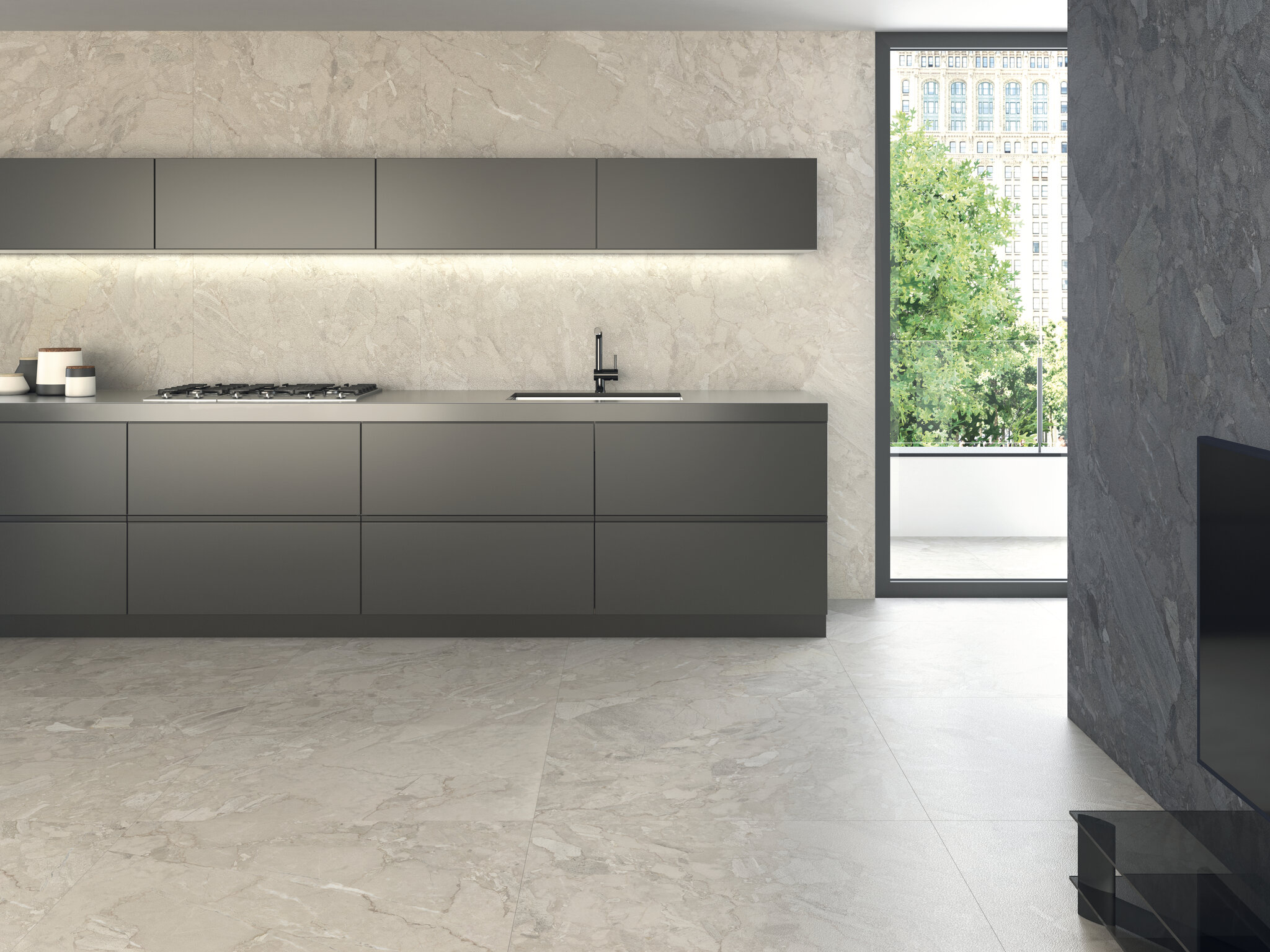 Ένα ελικοειδές μείγμα υφών που συγκλίνουν σε μια αρμονική και απαλή παλέτα χρωμάτων δημιουργεί μια σειρά πλακιδίων για κουζίνες και άλλους χώρους.