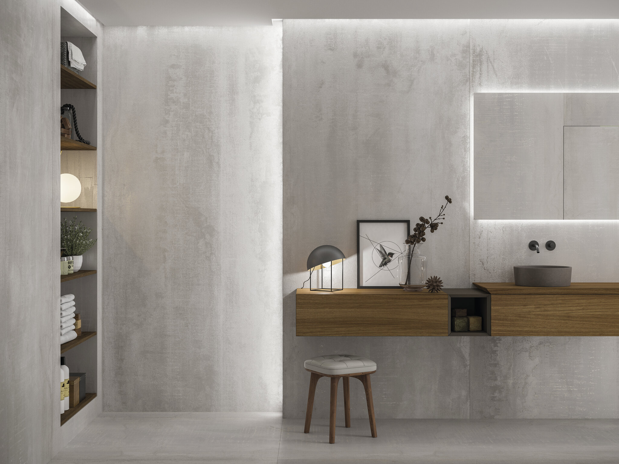 Αυτή η συλλογή κεραμικών πλακιδίων γίνεται σημείο αναφοράς για το βιομηχανικό στυλ χάρη στις έντονες υφές και τα φινιρίσματα που θυμίζουν μέταλλο.