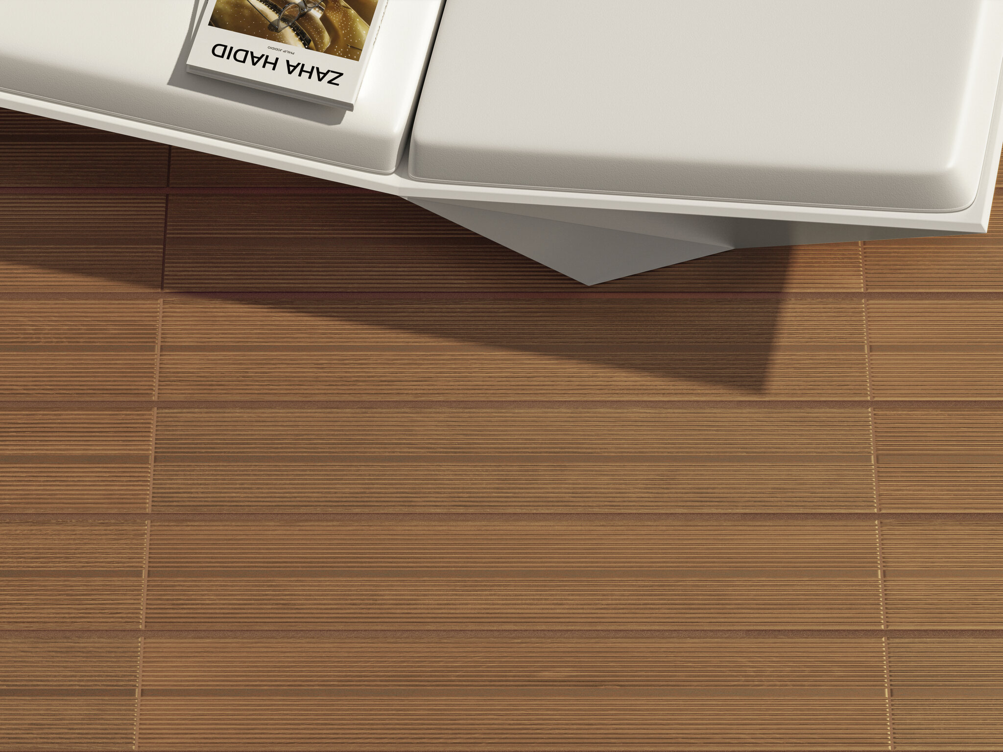Πλακάκια πορσελάνης με ξύλινο σχέδιο έρχονται σε εξωτερικούς χώρους με την Sagres, μια συλλογή κεραμικών εξωτερικού χώρου που ξεχωρίζει για την ικανότητά της να εγγυάται μέγιστη αντοχή στους λεκέδες και την έκθεση στον ήλιο.
