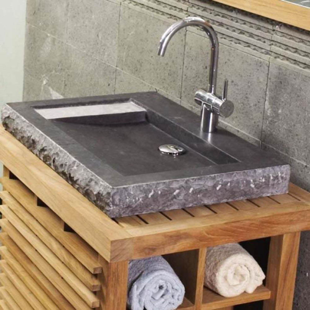 Coralia 69cm DK – Νιπτήρας επικαθήμενος πέτρινος 69x47xΥ7cm Grey