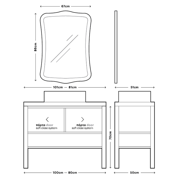 - Διαστάσεις Μ101 x Π51 x Υ70 cm