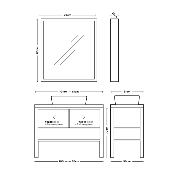 - Διαστάσεις Μ101 x Π51 x Υ70 cm