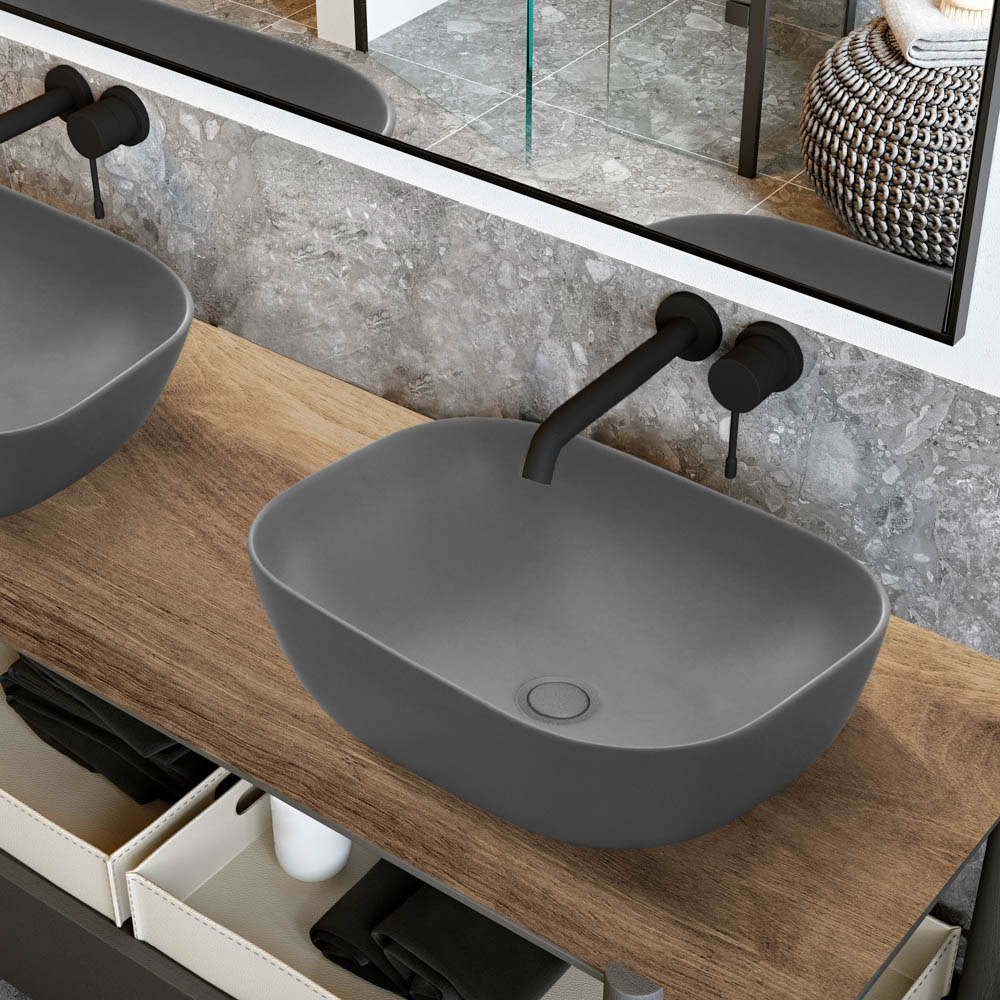 Encore 50 – Νιπτήρας πορσελάνης επικαθήμενος 50x40xΥ14,5 cm Grey Matt