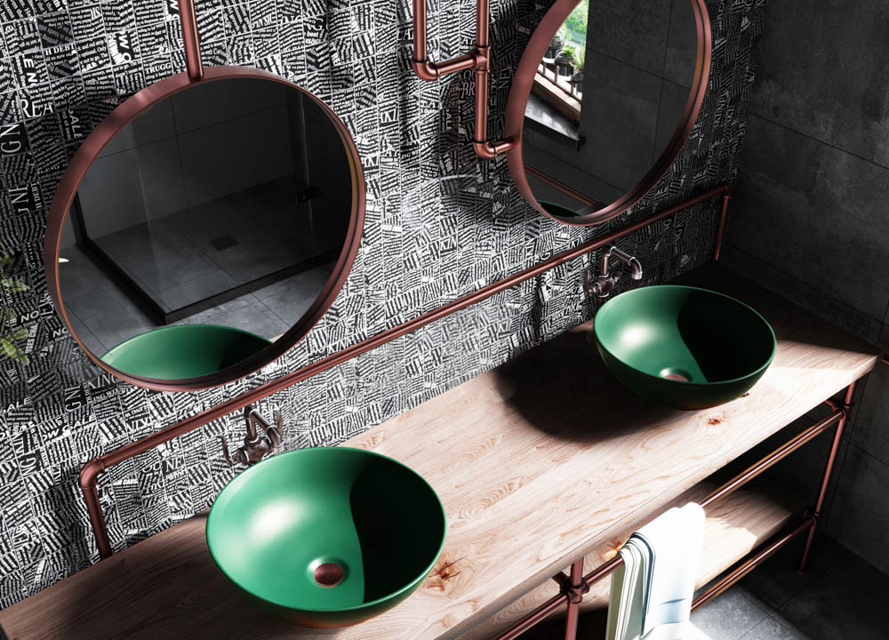 F 434 – Νιπτήρας πορσελάνης επικαθήμενος Ø40xΥ14 cm Green Matt