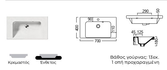 GSI Aliseo MALISEON-300 Νιπτήρας Πορσελάνης ένθετος 57×47 cm White