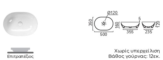 GSI Pura Νιπτήρας πορσελάνης επικαθήμενος 50×35 cm White