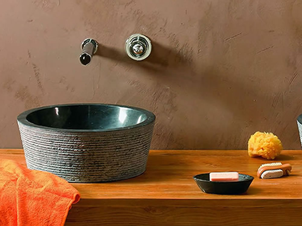 Jaya Black – Νιπτήρας επικαθήμενος πέτρινος Ø40xΥ15cm