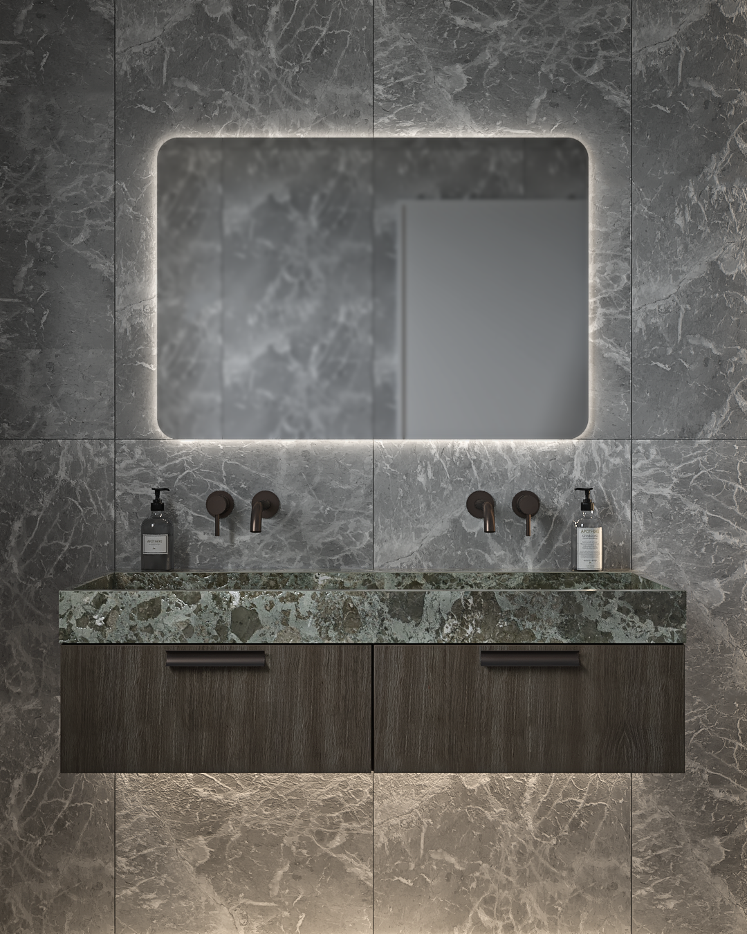 Καθρέπτης Curved παραλληλόγραμμος επιτοίχιος 70×100 cm με φωτισμό LED