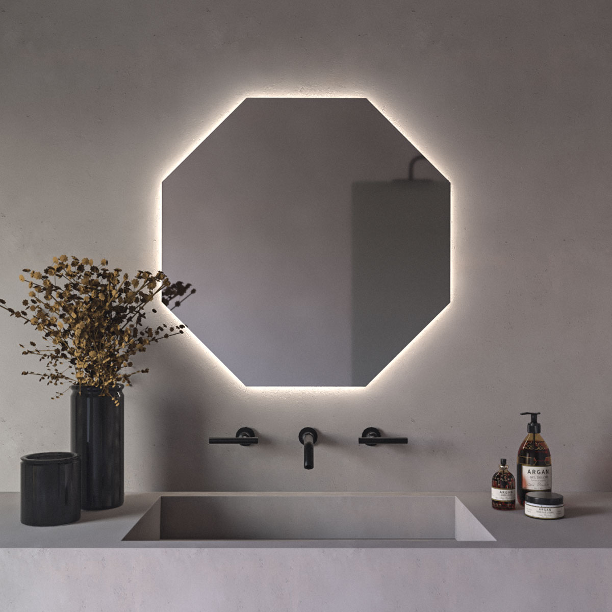 Καθρέπτης Octagon οκτάγωνος επιτοίχιος 70×70 cm με κρυφό φωτισμό LED