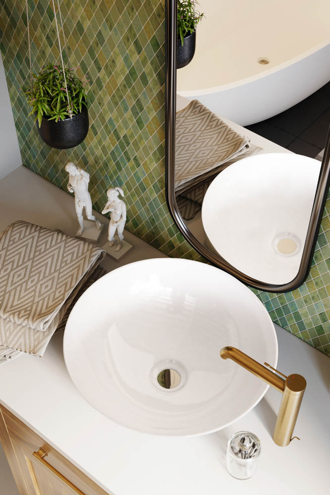 Μπορεί να τοποθετηθεί σε οποιαδήποτε επιφάνεια σε έπιπλο μπάνιου.