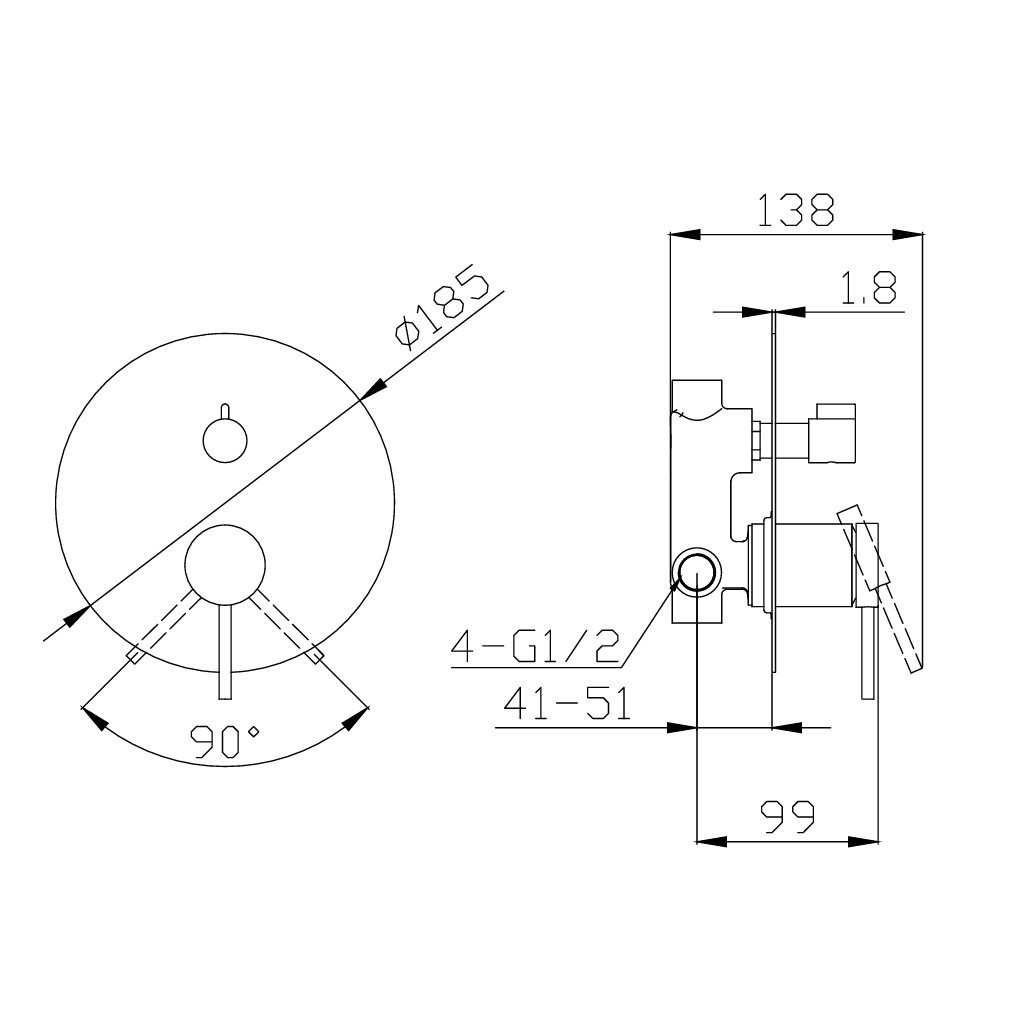Εντοιχιζόμενος στρογγυλός Μίκτης 2 εξόδων σε μοντέρνο design και Χρωμέ Γυαλιστερό φινίρισμα με σφυρήλατο χερούλι. Διαθέτει και τους εσωτερικούς μηχανισμούς κεραμικών δίσκων και έχει διαστάσεις 18.5cm (φάρδος).