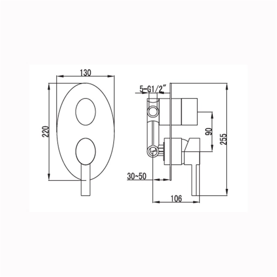 Εντοιχιζόμενος oval Μίκτης ντους 5 δρόμων σε χρωμέ φινίρισμα και με μηχανισμό κεραμικών δίσκων.Διάμετρος Βάσης 22cm.