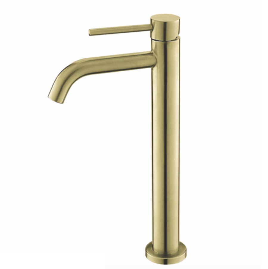 Μοντέρνος κυλινδρικός σχεδιασμός με λυτό και απέριττο Design που ταιριάζει μοναδικά σε κάθε μπάνιο. Ιδανική περίπτωση για να δώσει ένα νεανικό και διαχρονικό χαρακτήρα σε οποιοδήποτε μπάνιο.To αψεγάδιαστο Χρυσό Ματ φινίρισμα της αναδεικνύει ακόμα περισσότερο την μοναδικότητα της. Έχει Ολικό Ύψος 30.49cm με Ύψος Ροής Νερού 22.6cm και Πλάτος ροής νερού 16.8cm.
