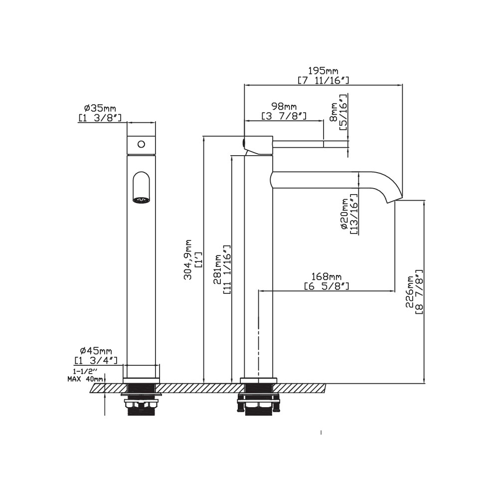 - Ολικό Ύψος 30.49cm με Ύψος Ροής Νερού 22.6cm και Πλάτος ροής νερού 16.8cm.