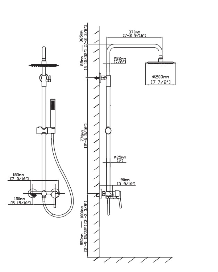 Μοντέρνα στήλη ντους με τηλεσκοπική κολόνα inox και μπαταρία 3 εξόδων.