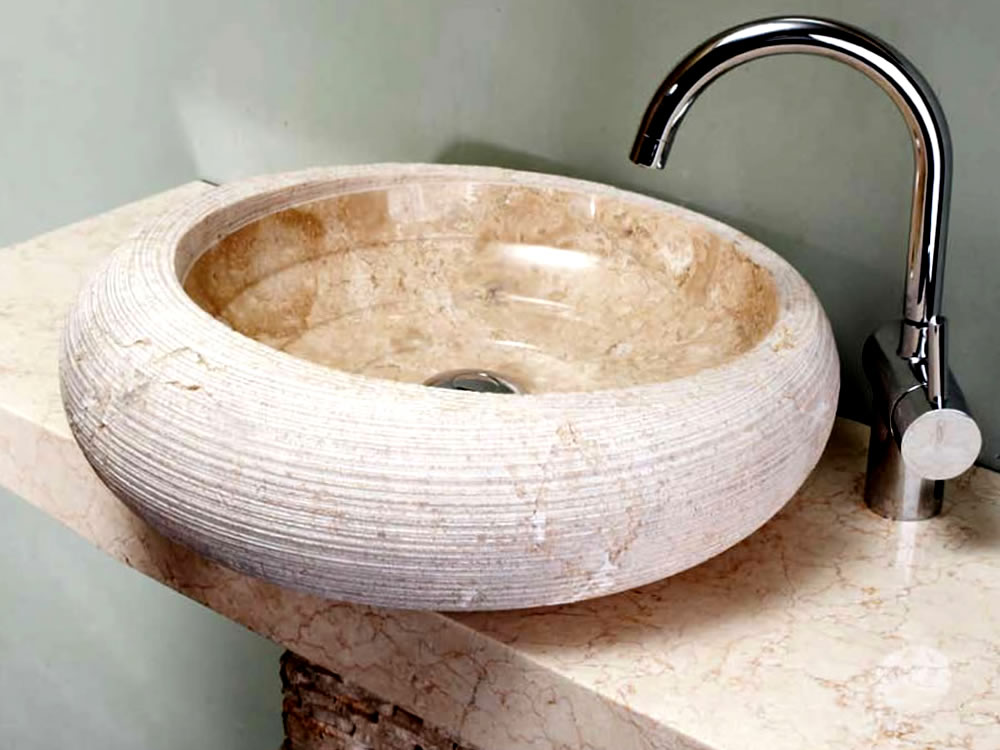 Nadia Beige – Νιπτήρας επικαθήμενος πέτρινος Ø45xΥ13cm