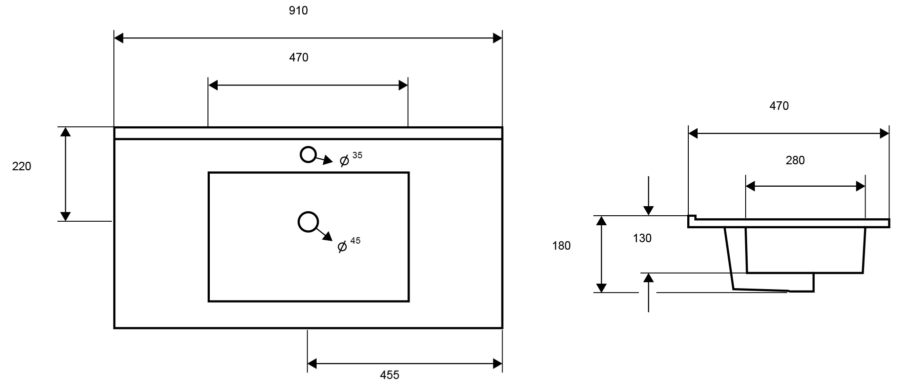 Karag LT- Νιπτήρας πορσελάνης ένθετος White 91x47x18cm
