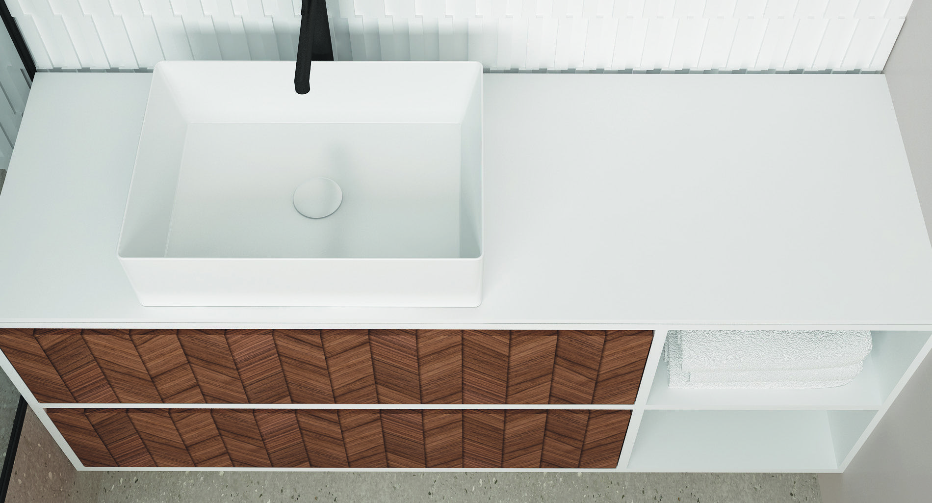 Μπορείτε να ολοκληρώσετε την εικόνα του επίπλου προσθέτοντας καθρέπτη δικής σας επιλογής (ντουλάπι, εταζέρα με ντουλαπάκι ή καθρέπτη με πλαίσιο ή καθρέπτη LED).
