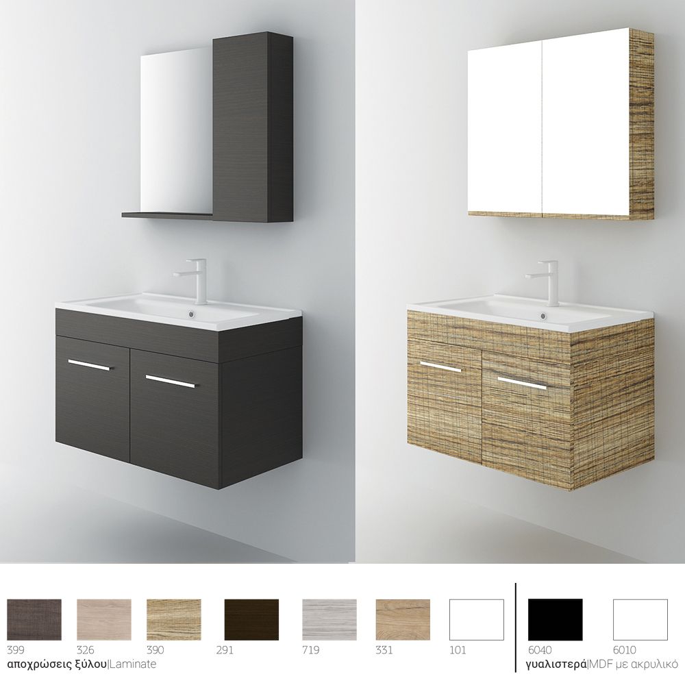 Orabella Lagina 80 – Έπιπλο μπάνιου Κρεμαστό με Νιπτήρα και Καθρέπτη Μ80xΒ45xΥ50cm