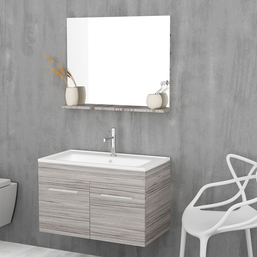 Orabella Lagina 80 - Έπιπλο μπάνιου Κρεμαστό με Νιπτήρα και Καθρέπτη Μ80xΒ45xΥ50cm