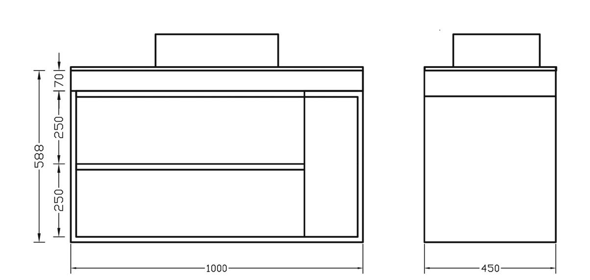 Αποτελείται από κρεμαστή βάση με συρτάρια με μηχανισμό κλεισίματος soft close (Blum).