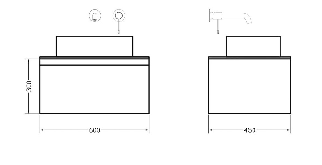 Αποτελείται από κρεμαστή βάση με συρτάρι με μηχανισμό κλεισίματος soft close (Blum).