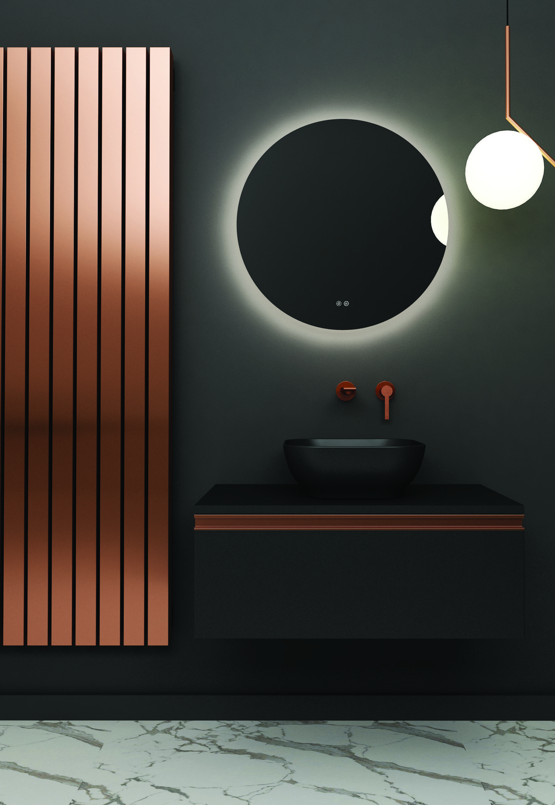 Κατόπιν επιλογής, μπορεί να συνοδευτεί με γραμμικό φωτιστικό μπάνιου Led.