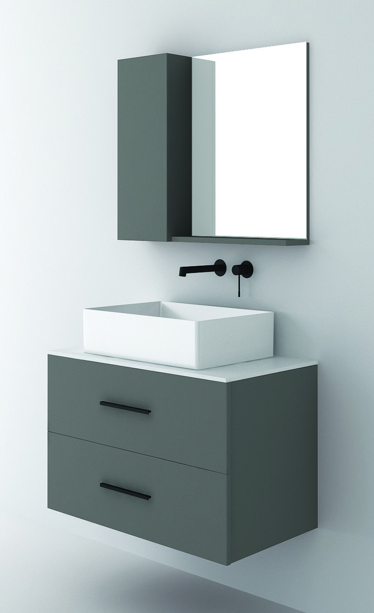 Orabella Solid Surface 80 – Έπιπλο μπάνιου κρεμαστό με 2 Συρτάρια και Καθρέπτη 80x45xY50 cm
