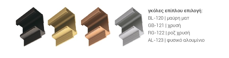 Γκόλες επίπλου επιλογή: ΒL-120 | μαύρη ματ, GB-121 | χρυσή, RG-122 | ροζ χρυσή, AL-123 | φυσικό αλουμίνιο, βλέπε εικόνες.