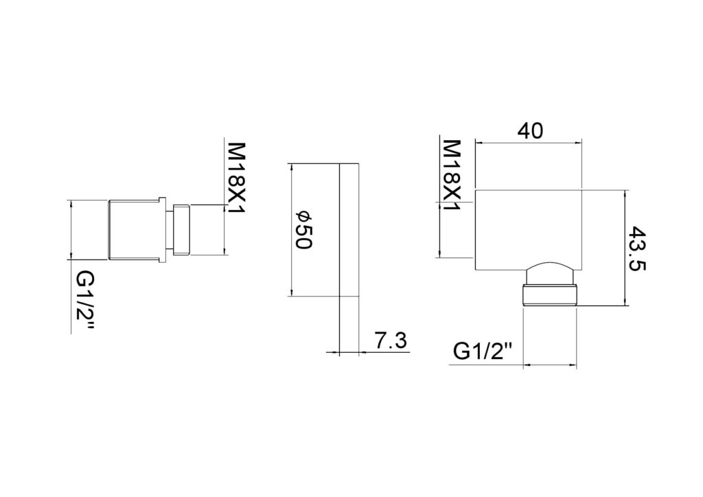 - Επίτοιχη παροχή νερού για σύνδεση σπιράλ ντους