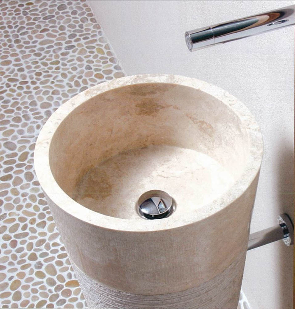 Raja Beige – Νιπτήρας επιδαπέδιος πέτρινος Ø40xΥ90 cm