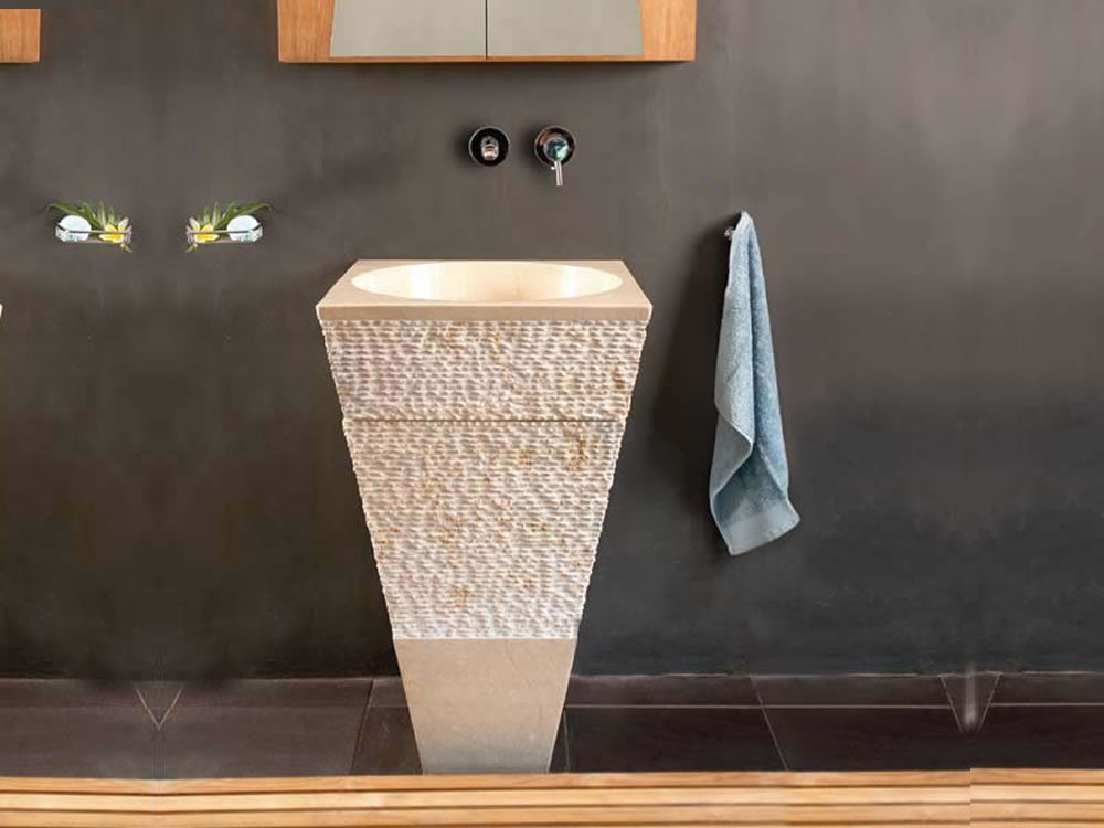 Sangha Beige – Νιπτήρας επιδαπέδιος πέτρινος 45x45xΥ90 cm