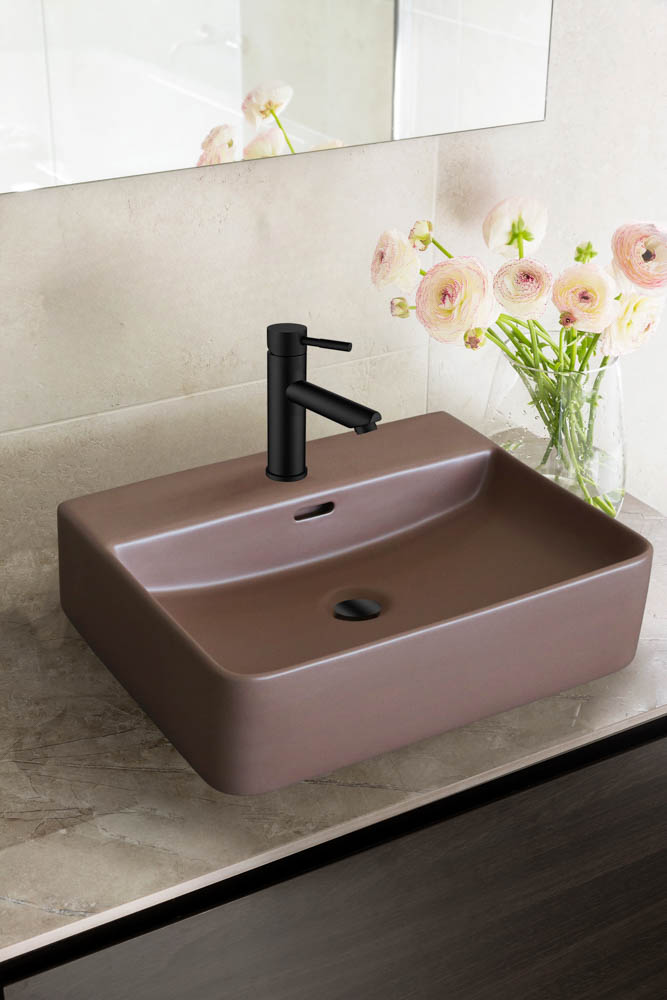 Slim 50 – Νιπτήρας πορσελάνης επικαθήμενος 50x42xΥ12,5 cm Brown Matt