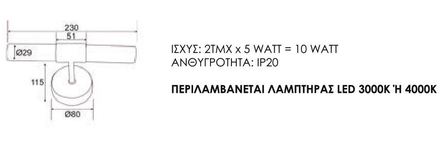 - Ισχύς: 2τμχ x 5w=10w