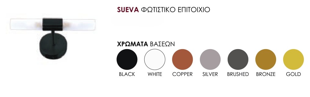 - Διαθέσιμα χρώματα βάσης: black, white, copper, silver, brushed, bronze, gold