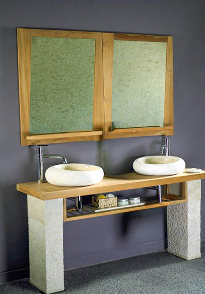 TEAK Alila Beige – Έπιπλο Πάγκος (ξύλο Teak με μαρμάρινες κολώνες) Μ160xΠ50xΥ76 cm