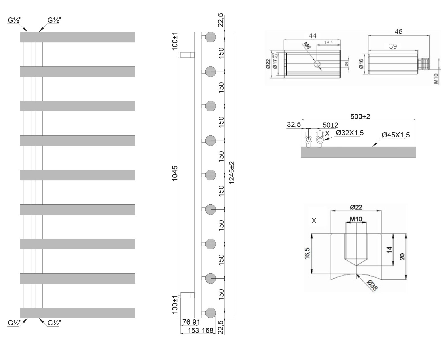 Karag Design 2 – Θερμαντικό σώμα μπάνιου Chrome 16,8x50x124,5cm
