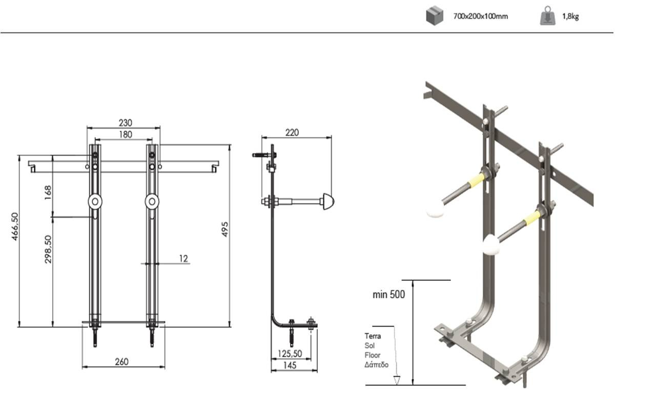 Μεταλλική βάση τοίχου και δαπέδου για αναρτώμενο μπιντέ.