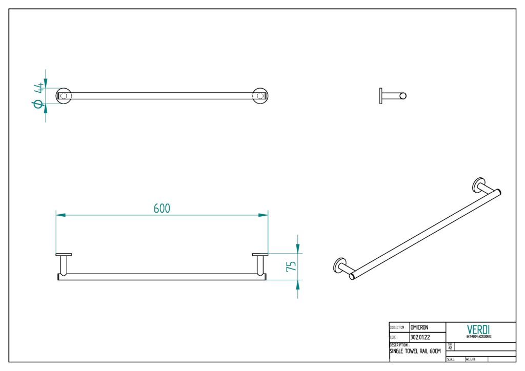 Verdi Omicron – Πετσετοθήκη μπάνιου μονή Light Gold Gloss PVD Μ60xΒ7,5xΥ4,4 cm