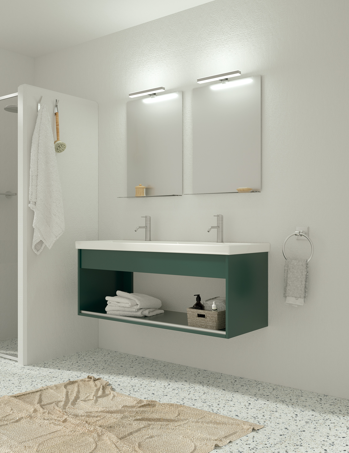 Περιλαμβάνει βάση, νιπτήρα, δύο καθρέπτες και δύο φωτιστικά.